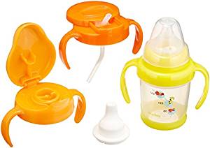 乳首、スパウト、ストロー、コップの飲み口がセットになっていて、赤ちゃんの成長にあわせて「飲む」行為を楽しくサポートしてくれます。