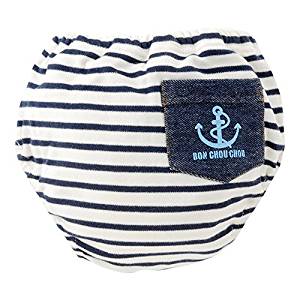 カジュアルなマリン柄がおしゃれ!こちらも吊り式で早く乾きます。肌が触れる吸水層付きパンツにはタオル生地を使用し、肌触りも気持ち良いです!4層構造で安心です。
