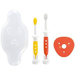 “生え始めた乳歯を磨くのに便利な歯磨きセットです。仕上げブラシは短い毛で出来ていて、残りカスも簡単に落とせます。”