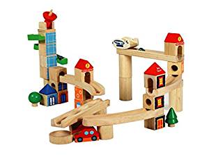 こちらは、スロープとブロックを自由に組み合わせて、ビー玉転がしのタワーを作るおもちゃ。ビー玉受けとスロープが接合されているため、幼い子どもでも比較的簡単に遊べるのが魅力です。パーツも100点あるため、多彩な組み合わせで自由に遊ぶことができますよ。