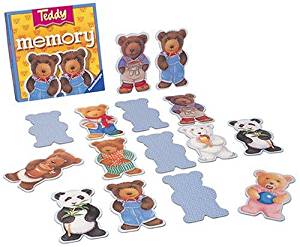 テディメモリーは、可愛らしいクマの形をした神経衰弱ゲーム。同じ服を着たクマさんを当てることができるかな?