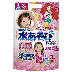 安心のオムツメーカー「ムーニー」の水遊びパンツ。濡れてもずり落ちず、「うんちブロックギャザー」がとっさのうんちもしっかりキャッチ!男の子はニモ、女の子はアリエルの柄で、水遊び気分も盛り上がりそう。