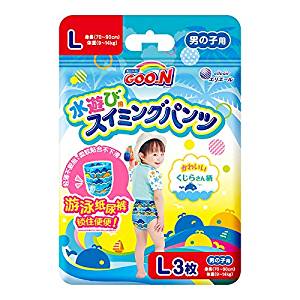 「超うす吸収体」が体にフィット!水着の中でも履きやすいのが、グーンの水遊びパンツです。可愛らしい柄で、子どもが喜んで履いてくれますよ。男の子用と女の子用があり。