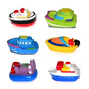 シリコーン素材で作られた船のおもちゃが、6種類入った水遊びセット。カラフルな船がプカプカ浮かぶ様子に、子ども達は大はしゃぎ!水がプーッと拭き出すため、水鉄砲のように楽しむこともできますよ。