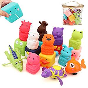 動物や積み木などが17種類も入った、水遊びおもちゃのセット。安全なABSプラスチックを使用しているため、赤ちゃんにも安心して与えることができます。少し成長したら、色当て遊びや、数を数える練習にも活躍してくれそうですね!