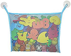 番外編!水遊びおもちゃを収納できるネットをご紹介します。水遊びに使ったおもちゃを放置していると、ヌルヌルになっていた!なんてことがよくあります。この収納ネットに入れてお風呂場に下げておけば、いつでも清潔な状態で遊ぶことができますよ。