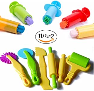 粘土遊びの道具があれば、創造の幅がもっと広がります!こちらは、プラスチック製の道具が11個入ったセット。「押し出しツール」の珍しさに、子どもが夢中になりますよ。